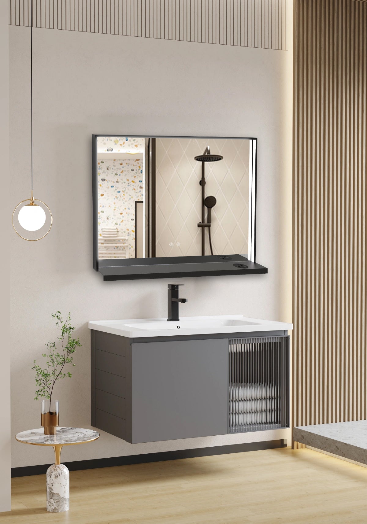 El espejo DANUBIO transforma tu baño en un espacio de diseño y confort. Su estructura rectangular con marco metálico disponible en negro o dorado oro aporta un toque elegante y moderno, ideal para ambientes minimalistas o sofisticados.